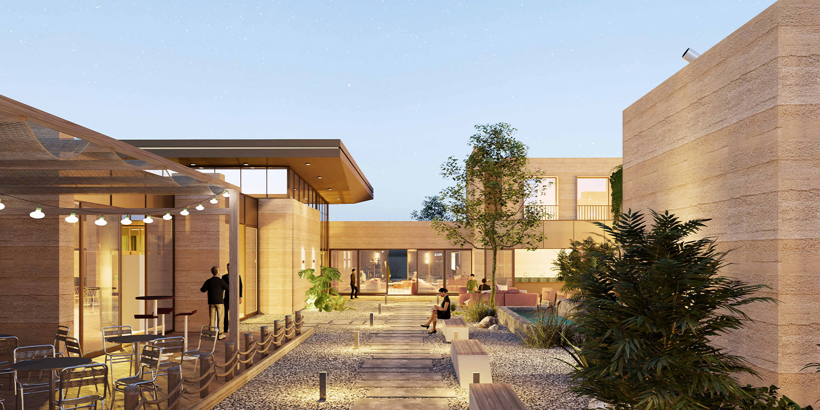 Төслийн ерөнхий төлөвлөлтөд амралт, ресторан зэрэг олон нийтийн орчинд тухтай, таатай мэдрэмж төрүүлэхүйц гадаад орчны тохижилт, орон зайн зохион байгуулалтыг чухалчилан авч үзсэн.