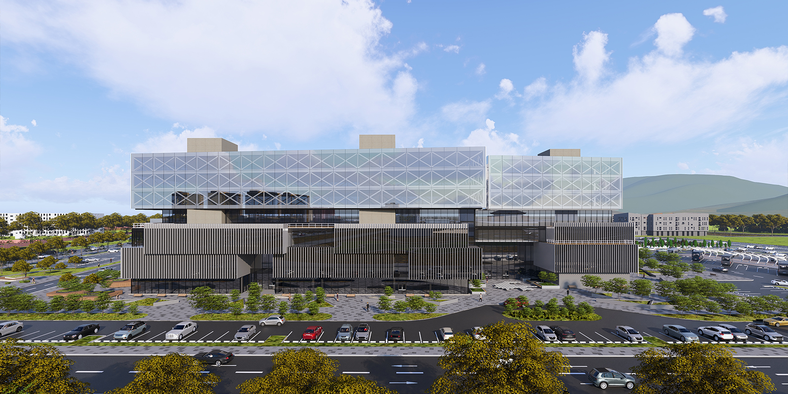 The master plan carefully considers pedestrian and vehicular circulation, with parking for 800 vehicles strategically located in a concealed area at the rear of the building. This approach minimizes visual impact and contributes to a cleaner, more harmonious urban environment.